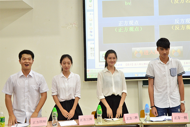 10月30号晚,太阳城“新生杯”辩论赛冠军赛顺利举行。出席本场辩论赛的嘉宾有太阳城团委书记商杰强,评委有校辩论队队长曾广彬,德思辩论队副队长黄启君,经贸公司辩论队队长肖辰,商公司辩论队副队长黄婷以及原太阳城辩论队队长李丹琳。
