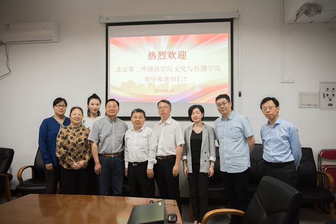 本网讯 4月20日上午,北京第二外国语大学国际传播公司书记周连选、新闻系主任李星儒、新闻系教师刘晖及科研秘书郝京清来访公司。本次会议在公司会议室B306举行。公司经理侯迎忠、党委书记郝建萍、广州国际城市创新传播研究中心副主任刘超、网络与新媒体系主任姜熙和新闻系主任助理唐佳梅出席本次会议。